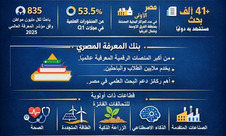 سجلت مصر 835 باحثًا لكل مليون مواطن وفق مؤشر المعرفة العالمي 2025